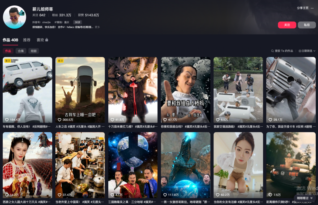 比如抖音300万粉丝博主“薪儿姐师尊”采用演员出镜演绎的形式,借用AI大开脑洞改编经典作品。