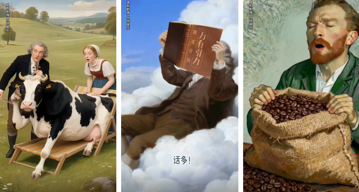 AI对古典名人的创意重塑,证明了经典IP的无穷潜力——跨越时空的趣味联动。