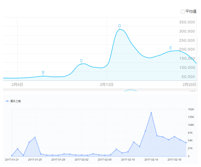 好莱坞歌舞片《爱乐之城》, 最近攻陷了中国各地影院,2月14日上映第一天,票房直破8000万,排当天第一。除了影院热映,它在网络上也有着不低热度,它的百度指数与微博指数均较高于同期上映的其他电影。