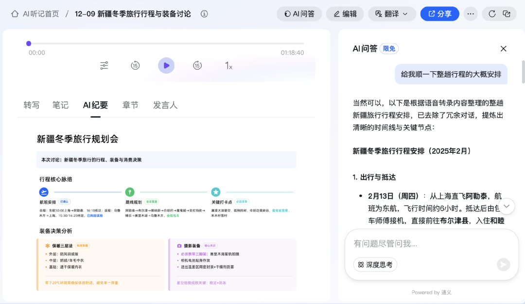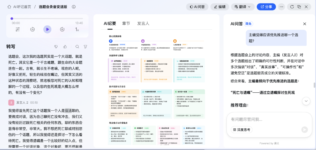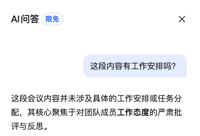 传统的转文字会给你一万字废话,你还得自己找重点。但AI问答的价值在于,让你把更多精力投入到决策上,而不是记录上。