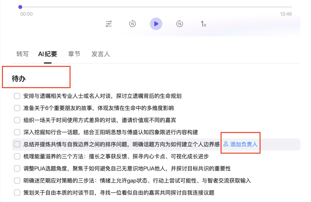 而且,得益于声纹识别技术,它不仅能转文字,还能分清哪句话是核心决策人的指令,哪句话是无关紧要的附和。这种对具体责任人的识别,是独立于工作流之外的第三方工具很难做到的。