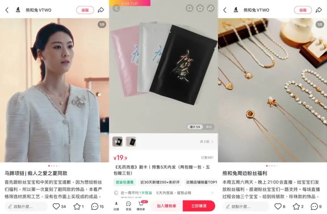 《犟骨》的商业路径并非孤例。在小红书,与平台多次合作的“熊和图剧场”已初步跑通类似模式。通过专属账号“熊和兔VTWO”售卖短剧周边,从女主同款项链到剧集主题小卡,客单价集中在20-180元区间。截至目前,首饰销量超50件,短剧小卡的销量超900件。