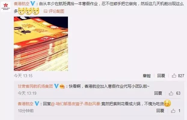 再比如航空公司找寒假作业那条,原博说“这个锅,我们不背!”