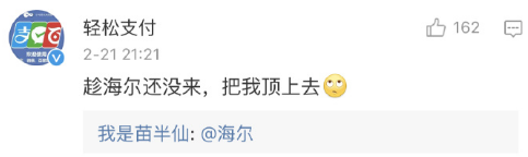 简称保持队形,即承接原博中的梗,用相同的句式将自己的品牌巧妙植入进去。