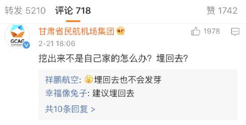 比如@甘肃省民航机场集团 就贱兮兮地问了句,“埋回去?”