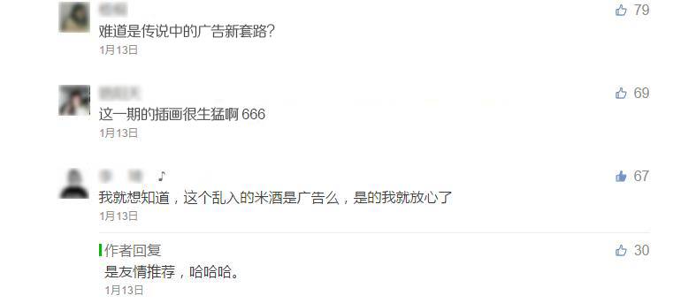 从1月13日到1月16日,双方一共合作了3次微信头条,使用了插画的文章的阅读数在5w-7w之间,而当月其他日期的头条阅读数维持在3w-5w之间,单篇阅读数高出2w+。这部分的阅读量的增长,他们认为还是应该归功于公号文章内容和插画的匹配度很高。
