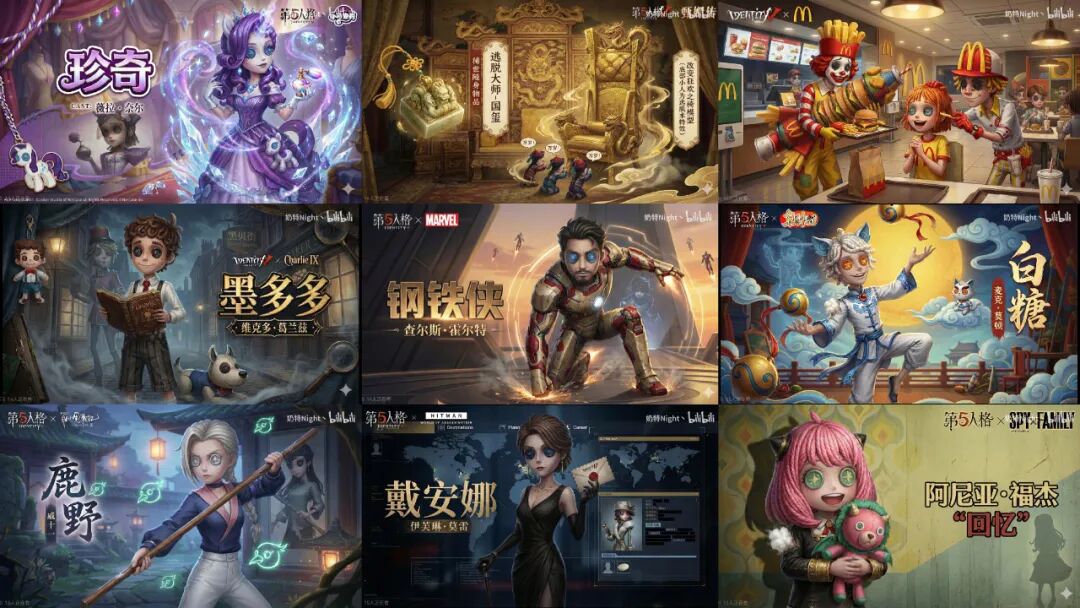 另一方面是风格质感的适配,画风上延续《第五人格》“哥特人偶”的风格基调,同时保留纽扣眼、麻绳发型等核心元素,让联动角色以人偶形态呈现,这样既保留原作的辨识度,又化解了两者画风的违和感。