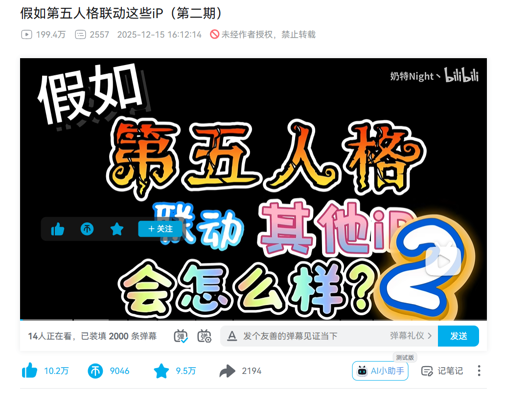 近日,B站UP主 “奶特 Night 丶”发布了一条用 Gemini 制作的《第五人格》与《小马宝莉》《京剧猫》《罗小黑》《甄嬛传》《间谍过家家》《查理九世》等IP的联动海报视频,浏览量近200万,收藏量达9.5万。