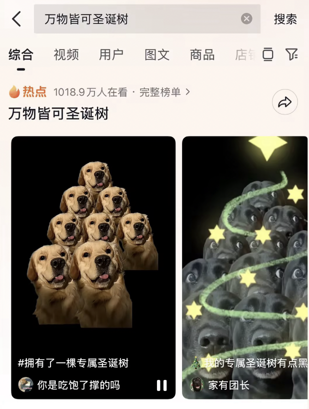 圣诞将至,千万网友开始以各种元素自制圣诞树,#万物皆可圣诞树 词条在抖音热榜热度达1019万,还有网友灵机一动,使用AI将美食、宠物制作成圣诞树,颇有生活趣味。