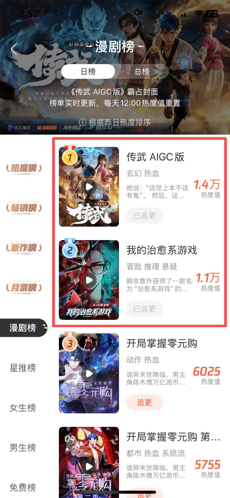 不止是抖音,今年9月底,AI漫剧《传武》上线腾讯视频,在4天内全平台播放量破千万,并登顶腾讯动漫漫剧榜。