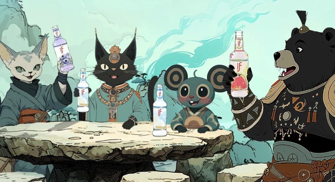 以今年8月上线的AIGC全流程动画《有山灵》为例,与光AI在剧集上线前,便与果酒品牌达成跨界合作,推出“仙酿果酒,自然有灵”联名产品,将品牌元素自然融入到剧情道具、场景画面之中。这一模式跳出了传统依赖后期硬植入的玩法。