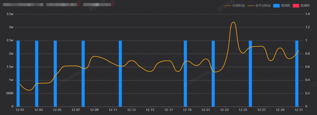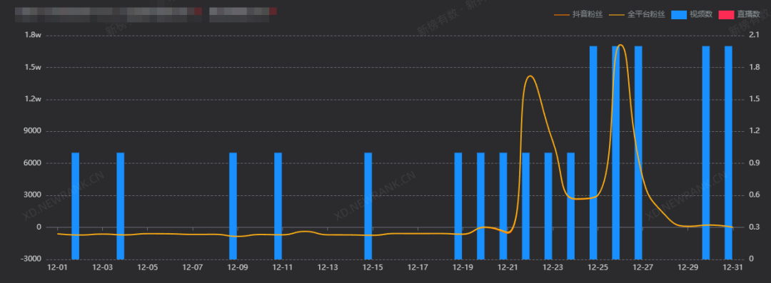 另外两个粉丝增长分别发生在12月16日和12月30日: