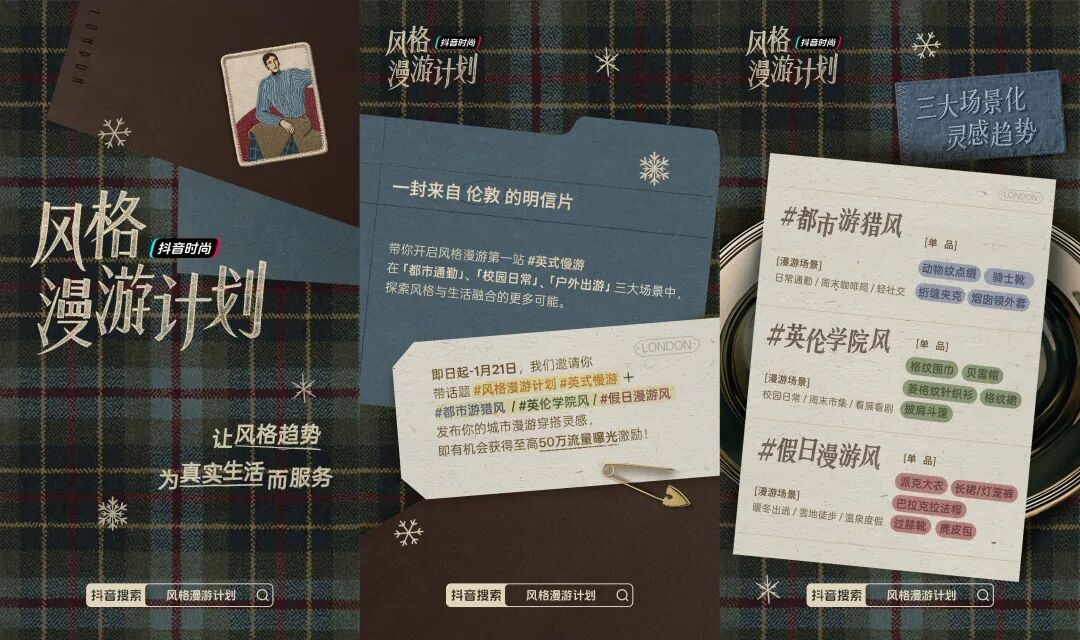 察觉到这股用户情绪后,抖音时尚迅速推出「风格漫游计划」,并细分出都市游猎风、假日漫游风、英伦学院风三大穿搭风格;大批跟进的时尚创作者,则从时尚概念到穿搭细节,对这三大穿搭风格进行了补充完善。自此,以自由松弛的名义,一股新的时尚潮流开始在抖音兴起。