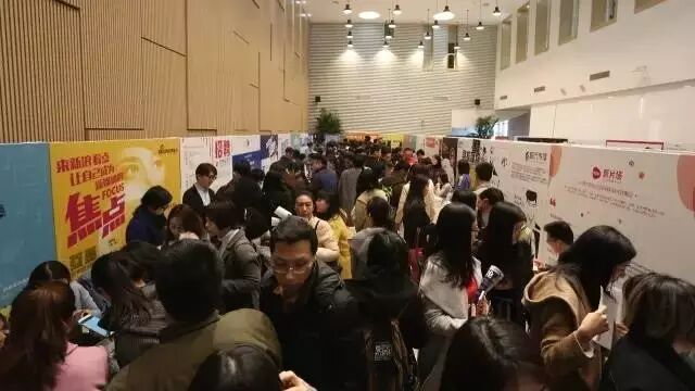 由于没有在线上报名但临时参加的应聘人数较多,招聘会现场一度“人满为患”。为了保证来到现场的“下一个咪蒙”、“下一个papi酱”的安全,也为了保证赶到现场的小伙伴都有机会入场,我们临时采取了限制人流、分批入场的方式,来保证招聘会的正常及顺利进行。