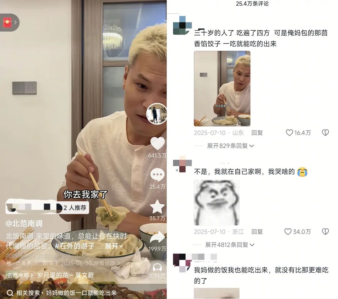 25条视频,293万粉丝,现如今,“北范南调”的评论区成了异乡人的集合地,许多游子在这里倾诉着自己对家乡的思念。