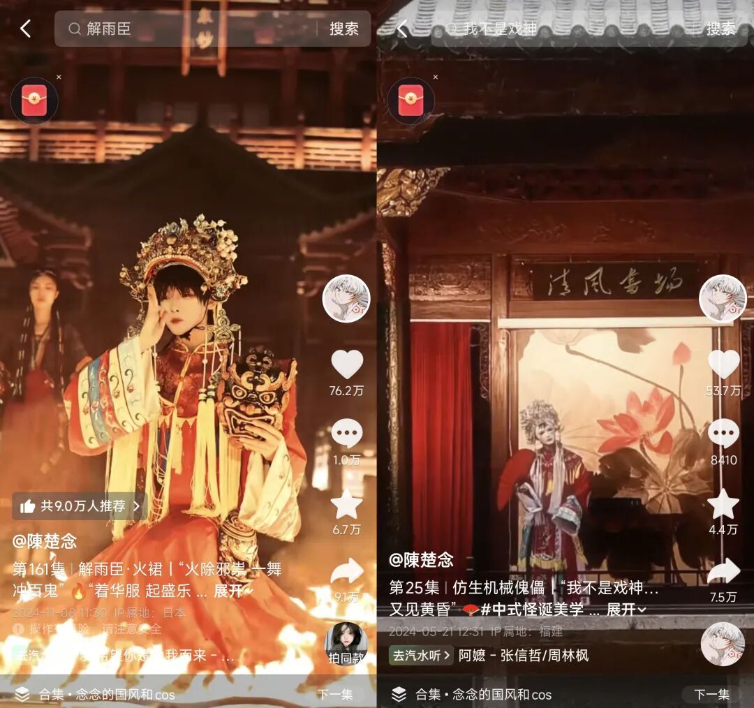 男大学生“陳楚念”将傩戏、火裙舞等非遗元素与机械舞、Cosplay等流行元素结合,为古老非遗增添了更鲜活的生命力。2025年3月,“陳楚念”将机械傀儡傩戏带进大学课堂,在抖音获赞420万。