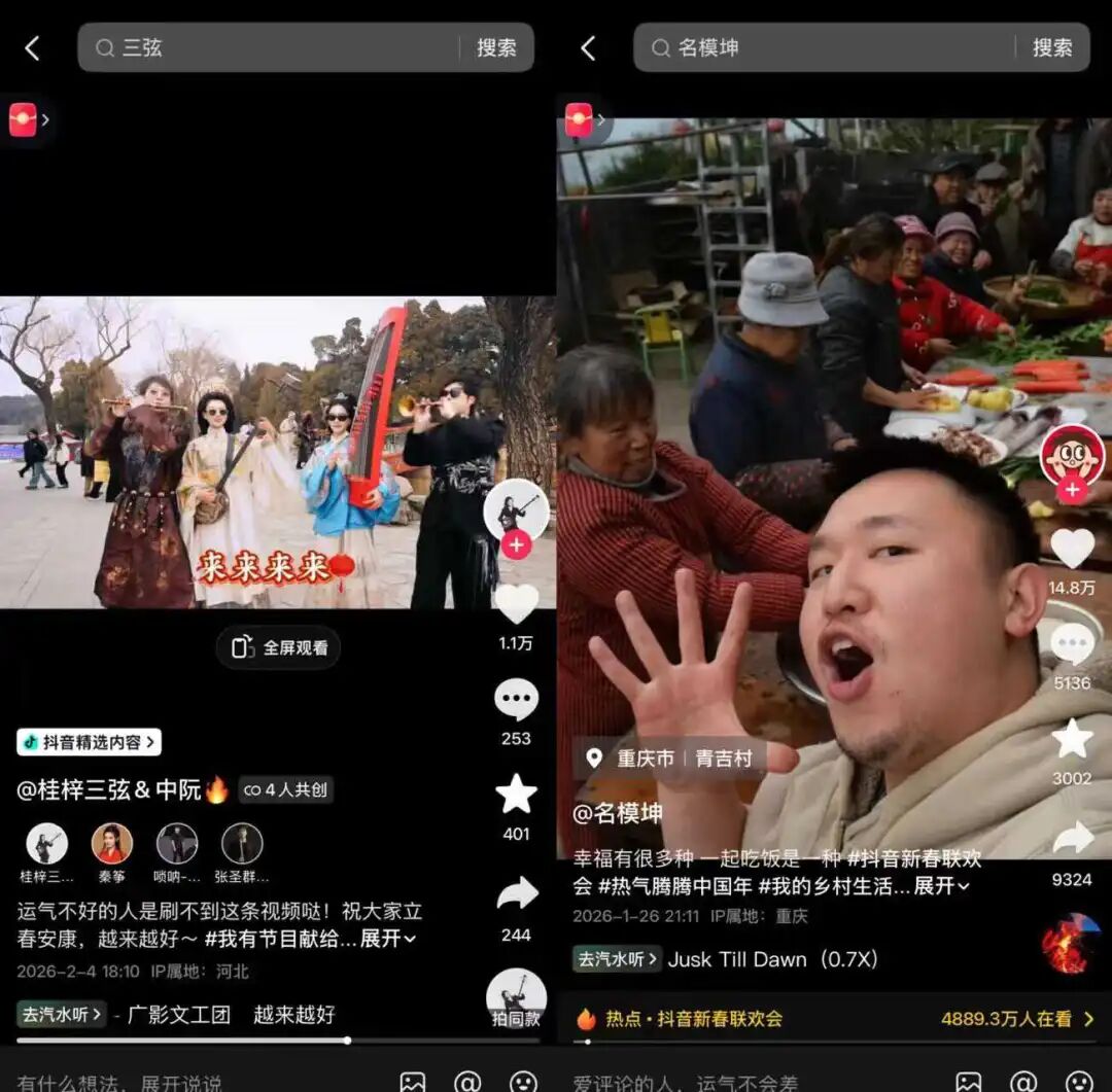 若说网友是住在抖音社区中的普通居民,那么这届春节联欢会就像邻里聚会,每家出一个节目。