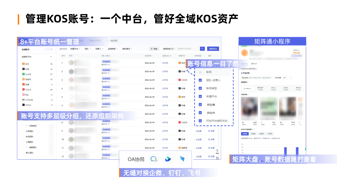 -多平台多账号统筹:一个后台聚合所有平台KOS账号,彻底告别“表格满天飞、账号无人知”的管理盲区