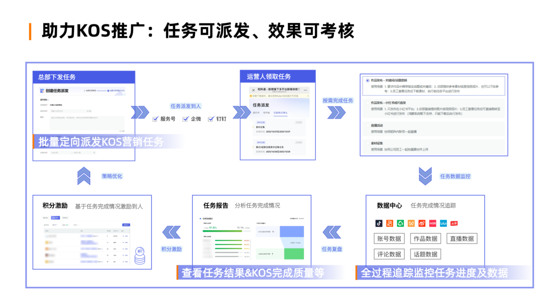 -任务中心派发:总部可向区域、终端定向派发KOS推广任务,确保营销动作快速落地