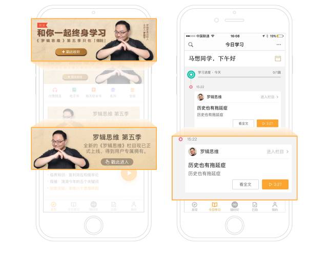 而在日播音频节目中,我就是“得到”的一个典型用户,叫终身学习者。我们原来的Slogan叫“有种有趣有料”,典型的老师思维;这一次,Slogan变成了“和你一起终身学习”——我只是把每天读到了啥、看到了啥,觉得有意思的分享给我的用户。