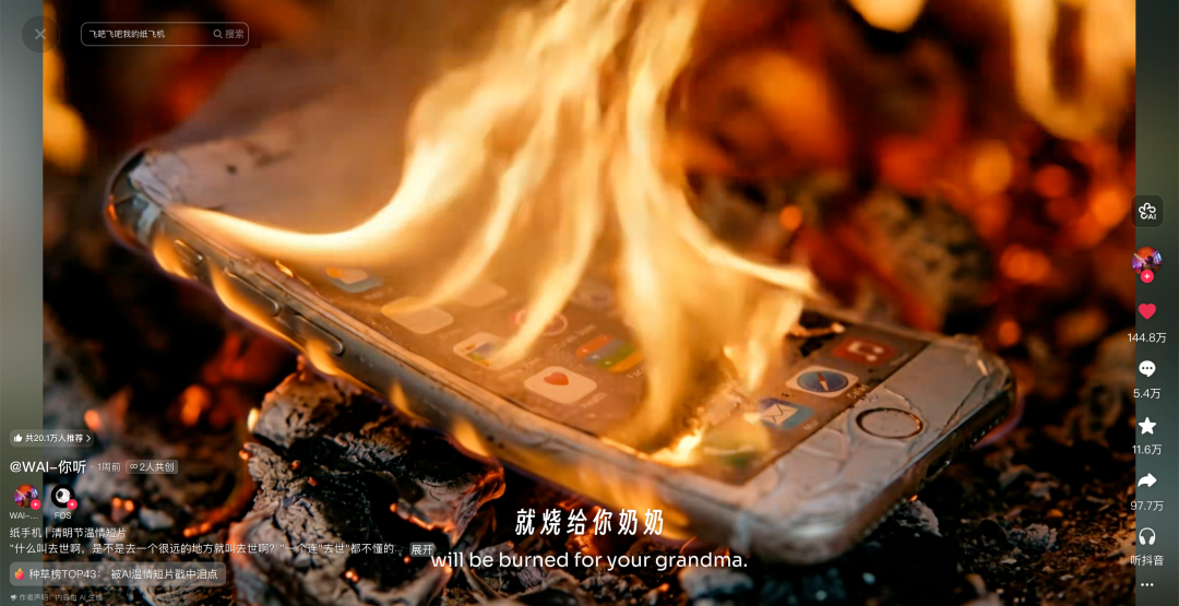 这些评论,来自一部名为《纸手机》的清明节AI短片。