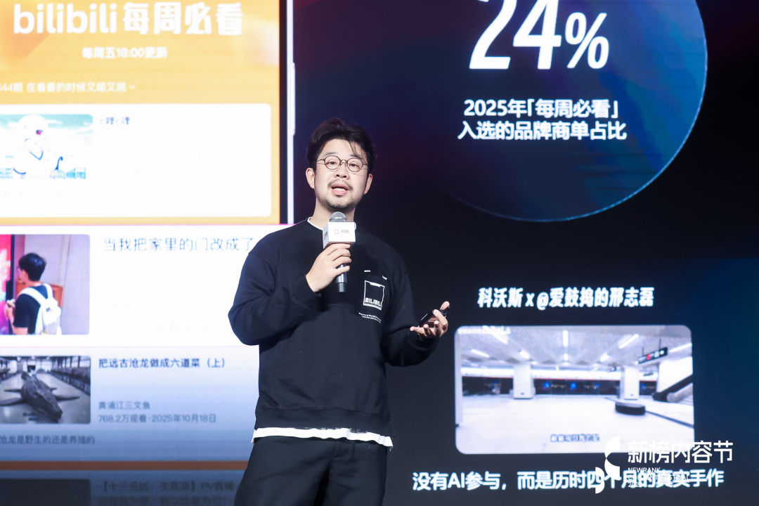 3月27日,哔哩哔哩营销中心全国策划负责人杨昊翔在「2026新榜内容节」上进行了题为《2026,与品牌和创作者一起“双向奔富”》的演讲,围绕B站在创作者生态、内容商业化以及平台能力升级,分享了最新实践与趋势洞察。