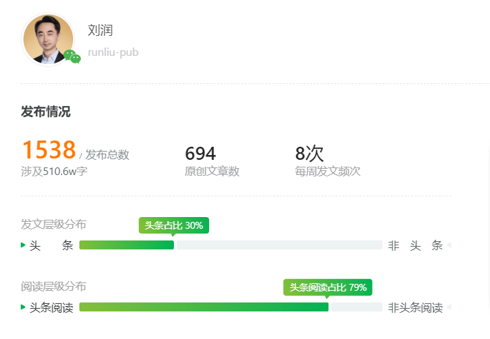 查看刘润的公众号可以发现,其更新量堪称惊人。新榜数据显示,仅在2025年,刘润公众号就累计更新超510万字,其中原创文章694篇,10万+文章超171篇。