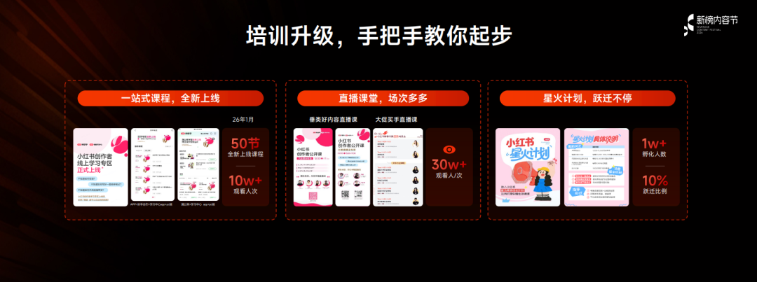 看了很多别的博主的成功案例。大家肯定都在想,我怎么能够成为下一个标杆?小红书为大家准备了三大武器,分别是培训升级、运营升级、产品升级。