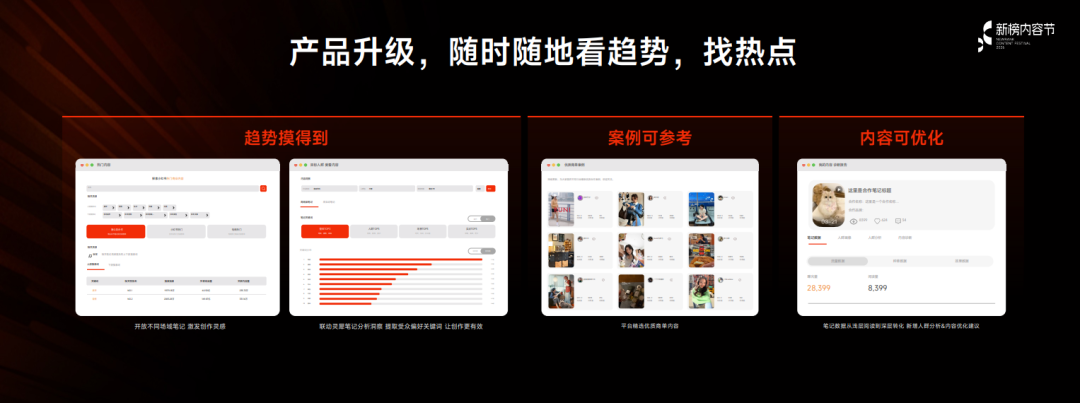 最后,我们在蒲公英的产品后台,还升级了一系列产品能力,希望大家可以做到趋势摸得到,案例可参考,内容可优化。