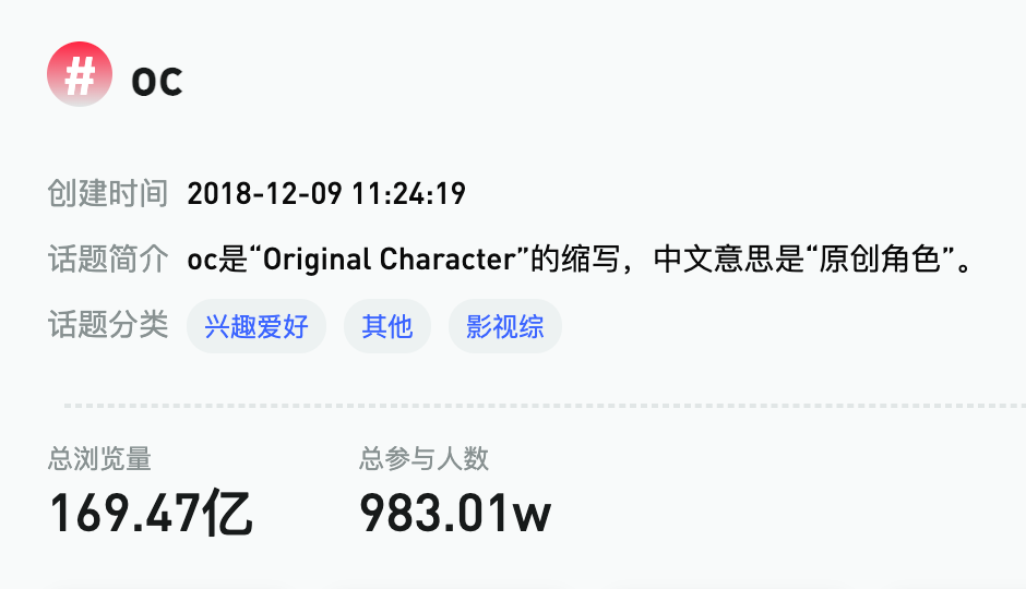 简单来说,OC就是创作者自主构思设计和创造的虚拟角色,而不是来自现有的动漫、漫画、游戏等作品。OC文化最早脱胎于二次元同人创作、约稿圈、语C(语言Cosplay)圈、桌面角色扮演游戏以及网络文学。