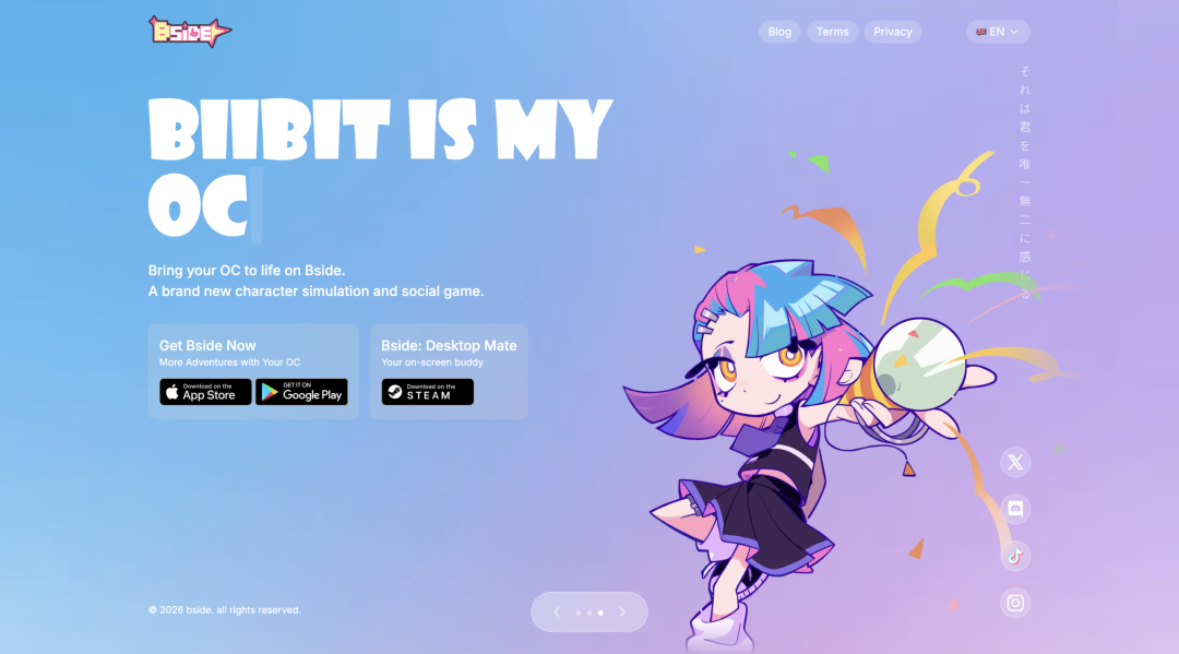 Bside是Kotoko AI推出的一个OC社交互动平台,今年4月初刚刚上线移动端,另有Steam上的Bside: Desktop Mate作为桌面伴侣扩展版。