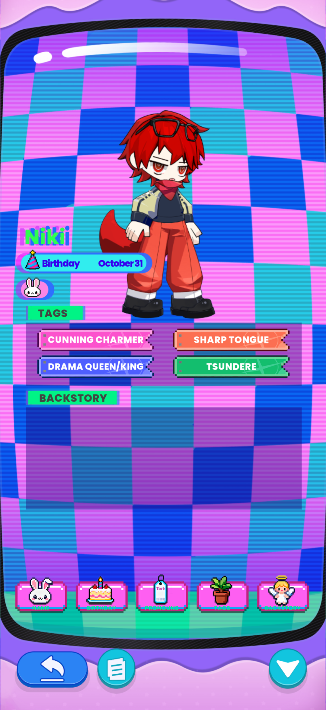 打开Bside,第一感受是强烈的Y2K复古像素风。在Bside中,用户创建的专属OC被称为“Biibit”。在创建我的Biibit时,界面像是一张复古的电子档案卡,我可以自由定制角色的身体特征、面部特征、发型、服装配饰等,Bside提供了上百种选项,有一说一真给我捏爽了。