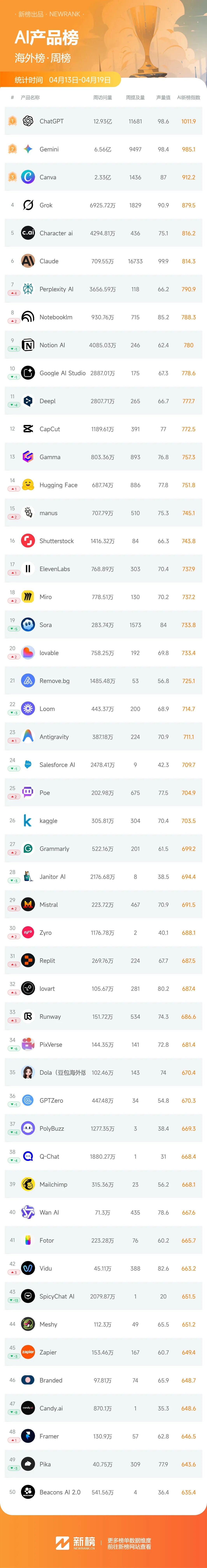 本周的国内榜中,上升幅度较大的两款产品,分别是由北京元石科技开发,基于满血版DeepSeek的AI助手问小白,上升13名,来到第30名;以及昆仑万维的天工AI,上升12名,来到第36名。