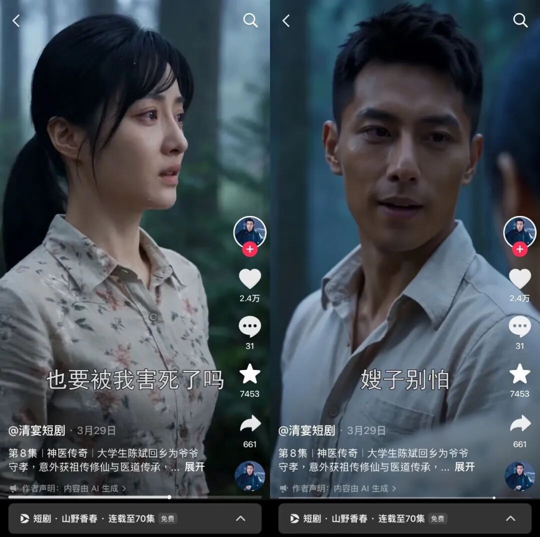 与此同时,AI技术的辅助也进一步加快了这类内容的产出速度,让乡村短剧在这一窗口期里获得了更多自然生长的空间。