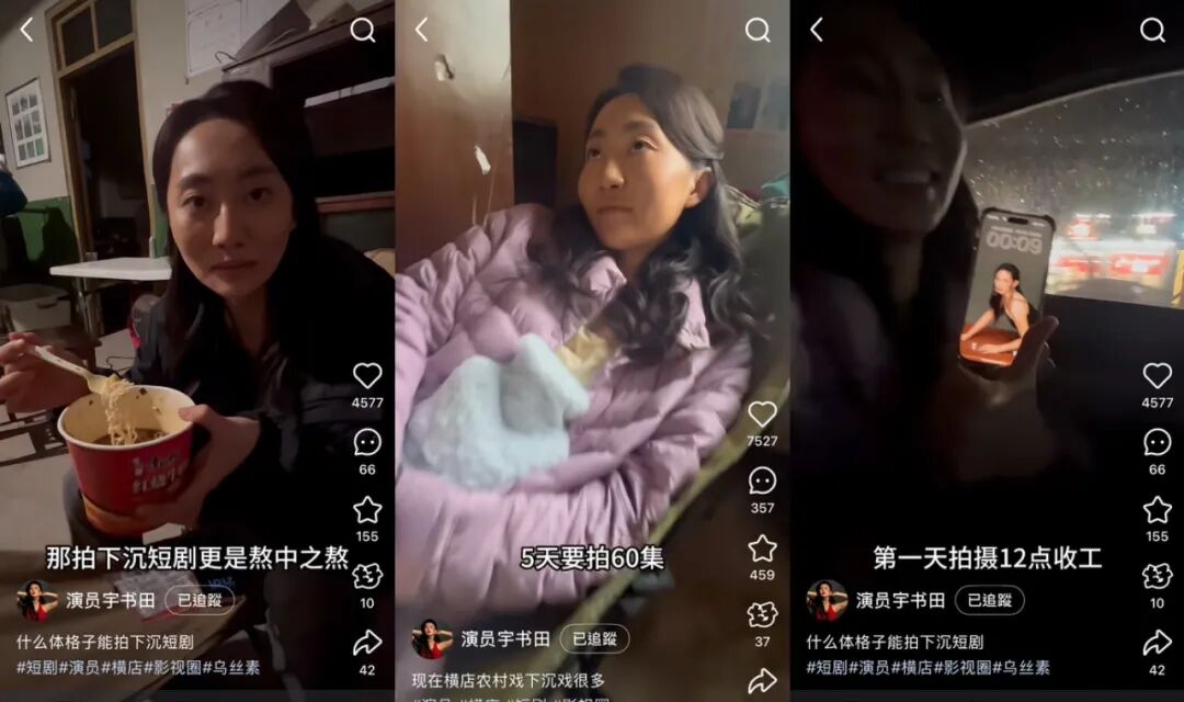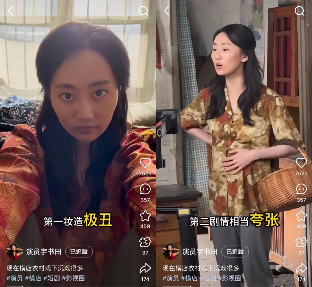 短剧演员宇书田在最近一期个人Vlog中分享了她拍摄低成本乡村剧的体验,并总结了电商平台农村短剧的两大特点: