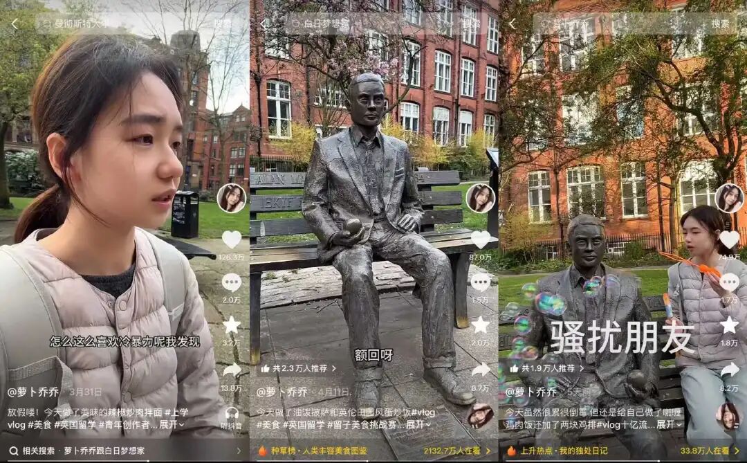 留学vlog,显然更能吸引网友们的眼球,用“萝卜乔乔”的话来说是“发一条爆一条”。