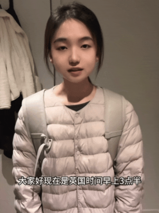 “大家好现在是英国时间早上三点半,由于我早上总是起不来,赶不上学校的免费公交车,所以我打算今天晚上不睡了,早上无论如何都要坐一次公交车,今天我有一节课,下课后,我打算给自己做一个油泼biangbiang面和肉夹馍,如果我今天成功赶上公交车的话,我就奖励自己吃一碗蛋炒饭,如果没赶上的话,我就惩罚自己吃一碗饭炒蛋。”