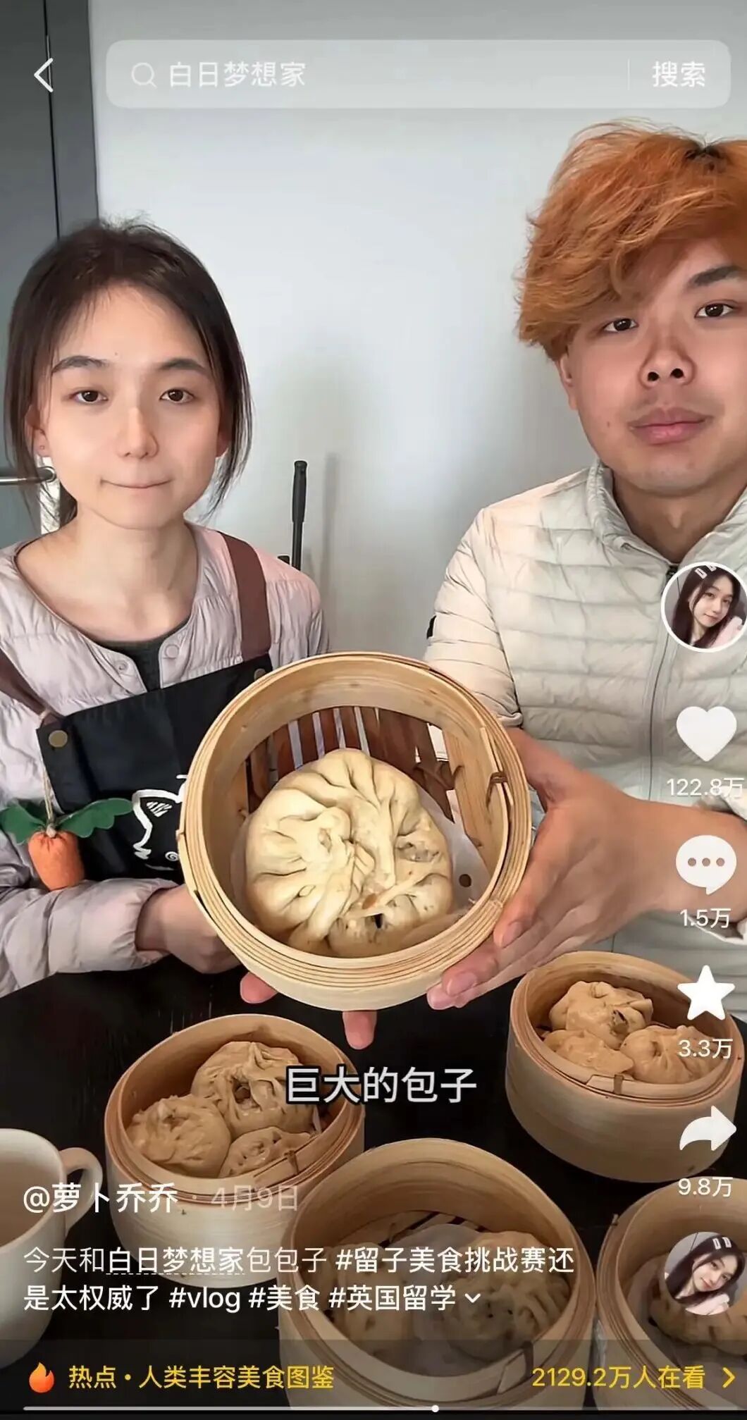 最近,这两位“英留顶流”还来了场梦幻联动,两人一起合拍做包子、排队两小时吃烧烤,画风宛如白云和黑土,视频在抖音获赞超百万。