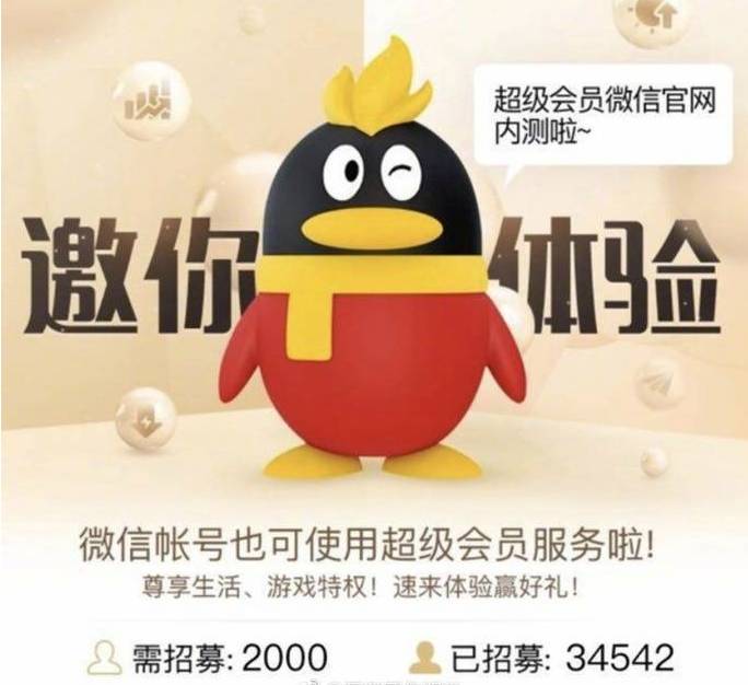 据虎嗅网 4月21日,互联网行业自媒体人@互联网俊明说爆料,微信会员在招募测试阶段。根据他爆料的图片来看,超级会员微信官网已开始内测,“使用微信号可直接开通或绑定QQ号,在QQ和微信同步使用超级会员特权。”
