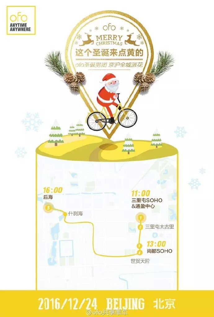ofo则在情人节开启“爱的骑迹情侣骑行挑战”;在圣诞节派圣诞男团全城浪漫派花;在双十一搞起了脱单配对活动。