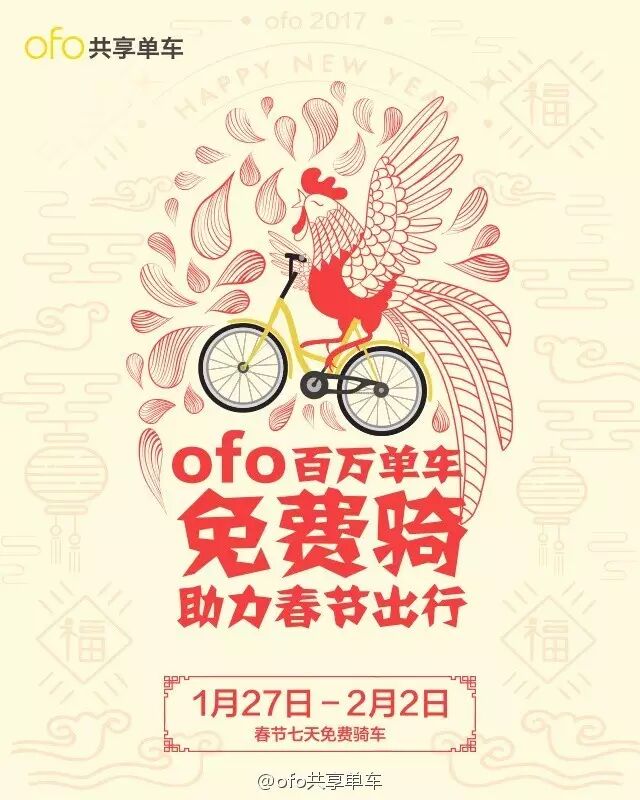 ofo则随即在过年期间推行免费骑行活动,打出“解决春节出行难”的社会公益口号,使得主流媒体、二三线城市的电视台、报纸争相报道,成功引起了关注。