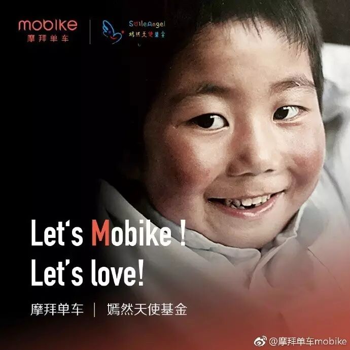 而创始人高谈“失败了,就当做公益”的摩拜又怎会甘心在公益形象塑造上落后于对方?4月22日,摩拜成立一周年之际,摩拜单车与嫣然天使基金开启了“共享单车&共享公益”战略合作,称未来将不定期发起公益活动,号召更多人共同关注环保,关注儿童!