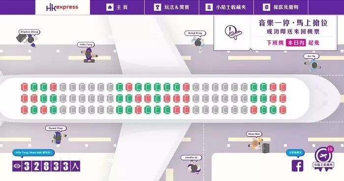 此外制作了全球首个网上音乐椅游戏:网站全天候播放音乐,音乐一停下,玩家就可以抢机位贏机票。