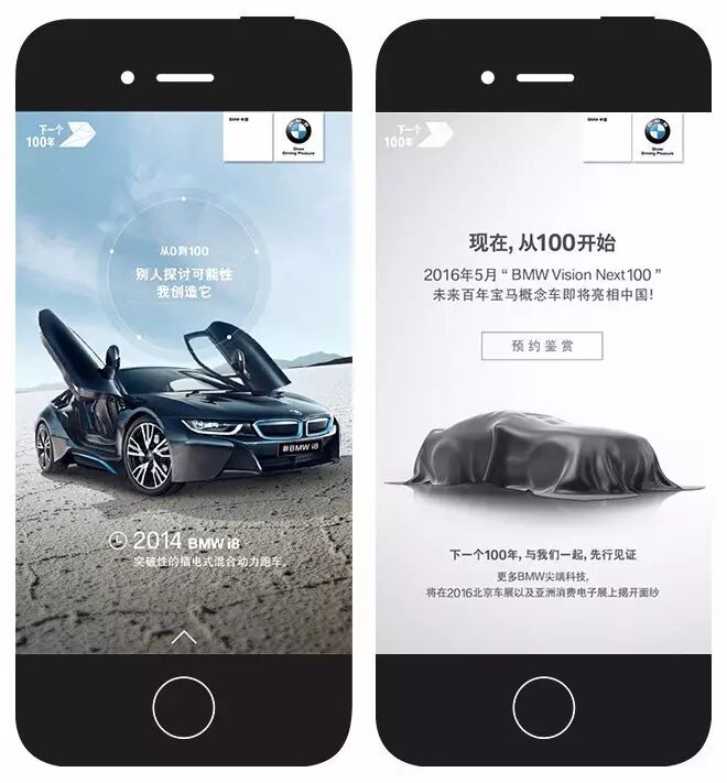 比如宝马在100周年时制作了一个H5,聊的是“下一个100年”。