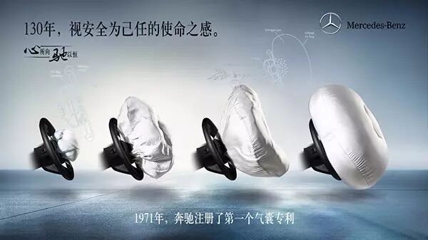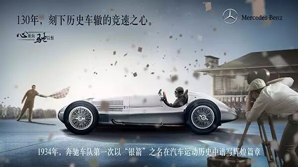 奔驰在130周年也发布过一套平面广告,记录了品牌历史中重要的节点。
