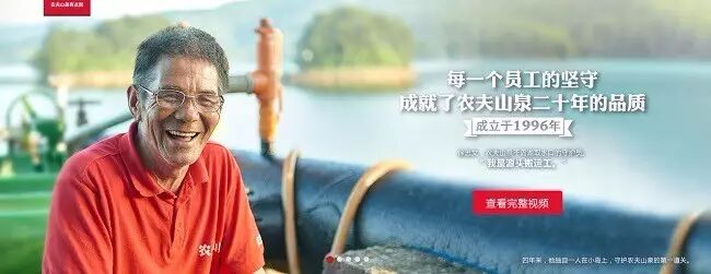 最常用这种做法的,大概要属向来喜欢以一线员工为主角拍摄广告的农夫山泉。20周年时,农夫山泉陆续发布了4支广告片,主角从搬运工到水质检测员,全都是自家员工。