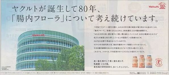 比如养乐多80周年庆的广告标题就是:“养乐多诞生80年,一直持续思考关于肠内健康细菌的议题”。强调对用户健康的关心,普及益生菌知识,而这也是养乐多主要的营销切入点。