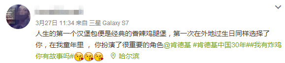从网友的反应来看,这次策划虽然不具有爆款潜质,但无疑是讨人喜欢的。肯德基的官微也贴出不少网友亲述的个人故事,不免让很多人回想起那个想要以肯德基作为奖励的孩童时代,而人又很难不被童真打动。