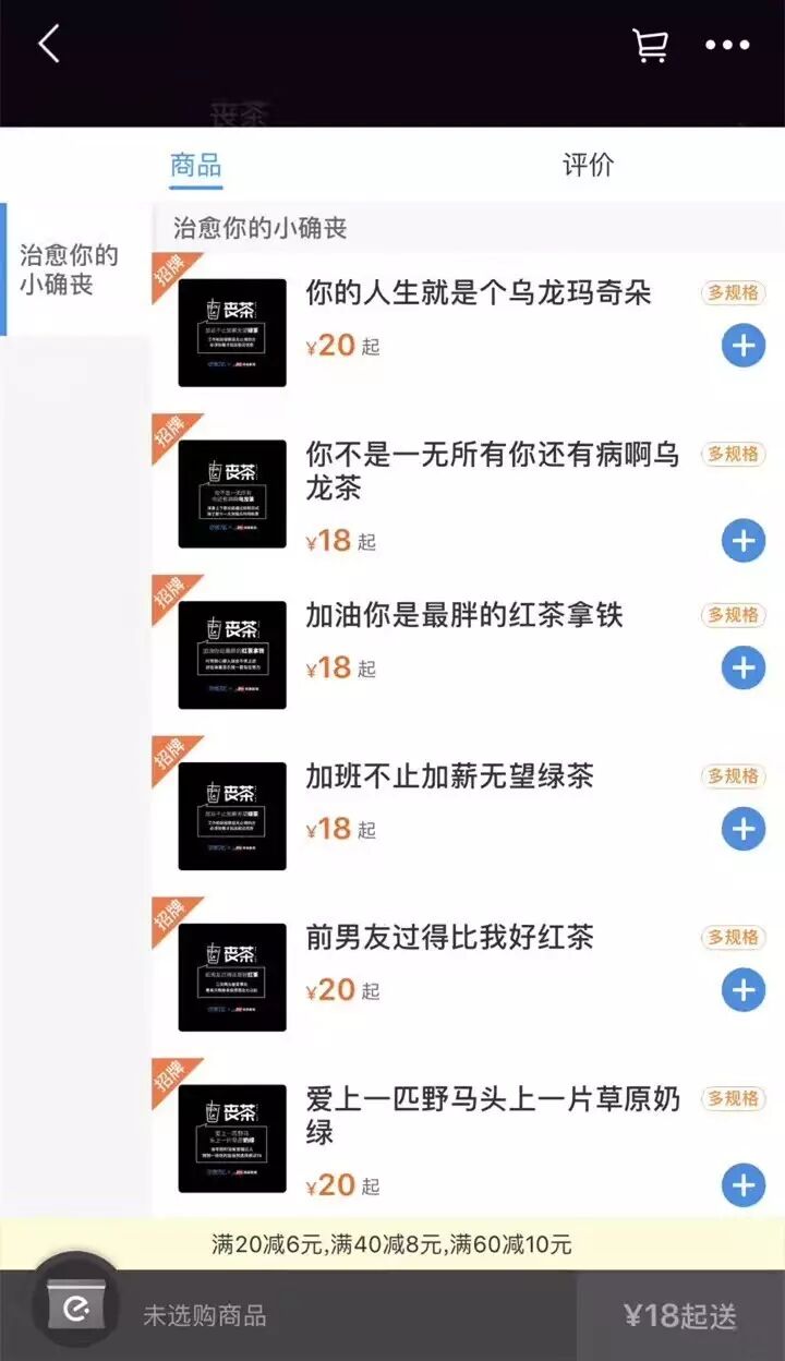 此次活动的发起方饿了么品牌部总监邬宋钱告诉榜妹,这次卖得最火的两款丧茶是“加油你是最胖的红茶拿铁”和“你的人生就是个乌龙玛奇朵”。
