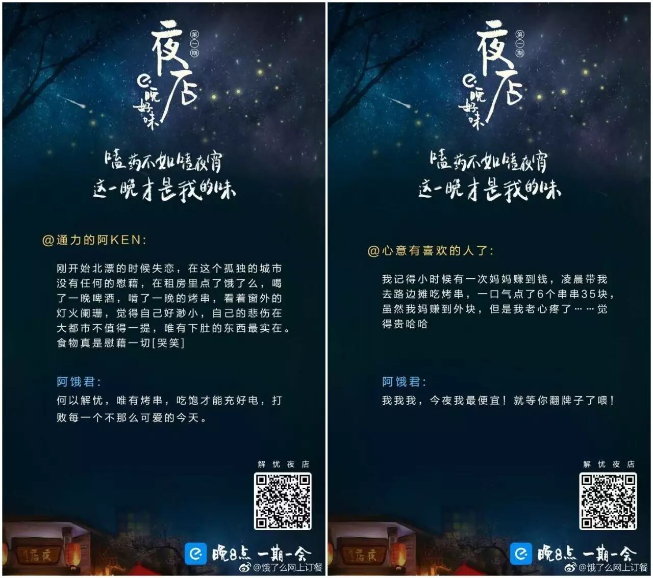 饿了么夜宵板块“解忧夜店·e晚好味”,既是提供给人们点夜宵的平台,又为年轻人尝试营造了一个深夜情绪的归属地和释放地。